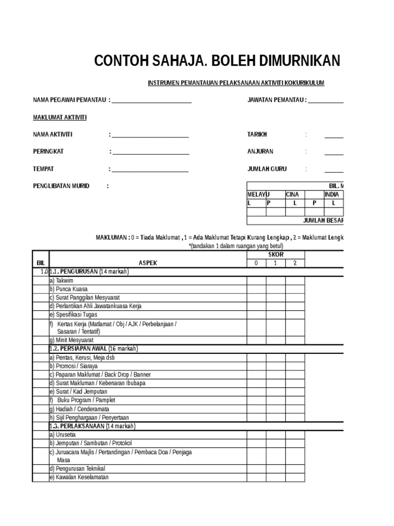 Borang Pemantauan Aktiviti Kokurikulum Pdf